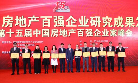 2018年3月22日,由国务院发展研究中心企业研究所、清华大学房地产研究所和中国指数研究院组成的“中国房地产TOP10研究组”,在京隆重举办“2018中国房地产百强企业研究成果发布会暨第十五届中国房地产百强企业家峰会”。