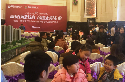 2014年12月28日下午,德杰 • 德裕天下与新加坡品格教育集团合作签约仪式在项目销售中心隆重举行,代表西安最高幼教水平的品格国际双语幼儿园正式落户德裕天下。
